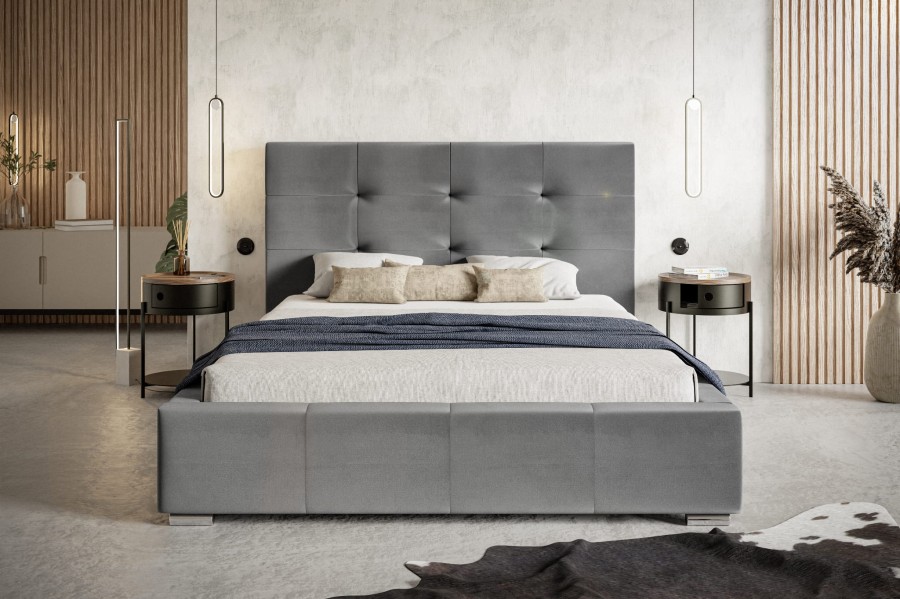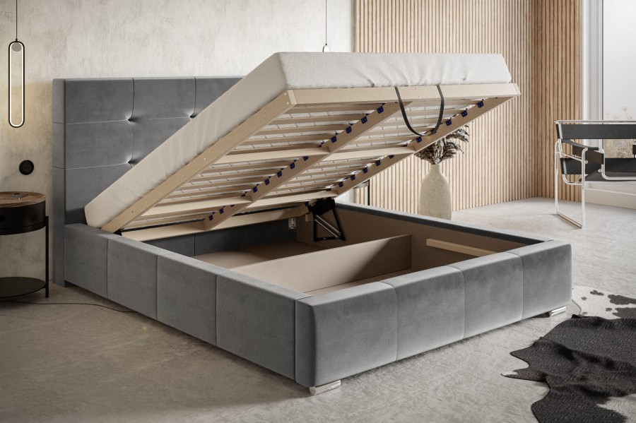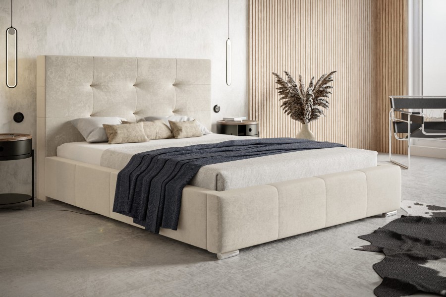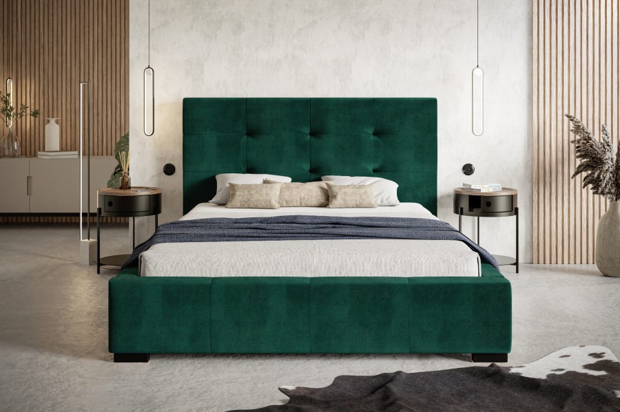 Łóżko zapewnia nie tylko wygodne miejsce do spania i dużo miejsca do przechowywania dla wszystkich twoich potrzeb, ale także sprawia, że Twoja sypialnia nabierze ogromnego stylu. Piękne wezgłowie z pewnością będzie wspaniałym akcentem w Twoim domu, dodając mu odrobinę luksusu rodem z Gatsby'ego. Tapicerowane miekkim aksamitnym materiałem łóżko jest niezwykle elastyczne i będzie pasować do każdego wystroju sypialni.