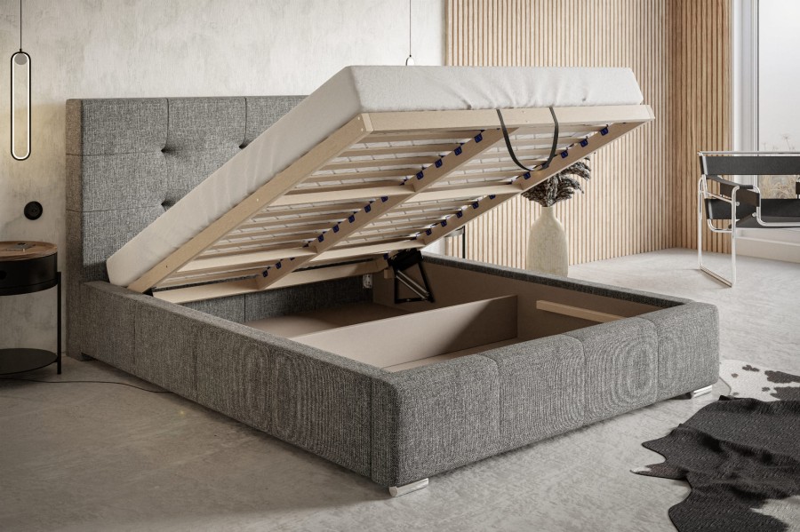 Łóżko tapicerowane ze stelażem i pojemnikiem KIEV