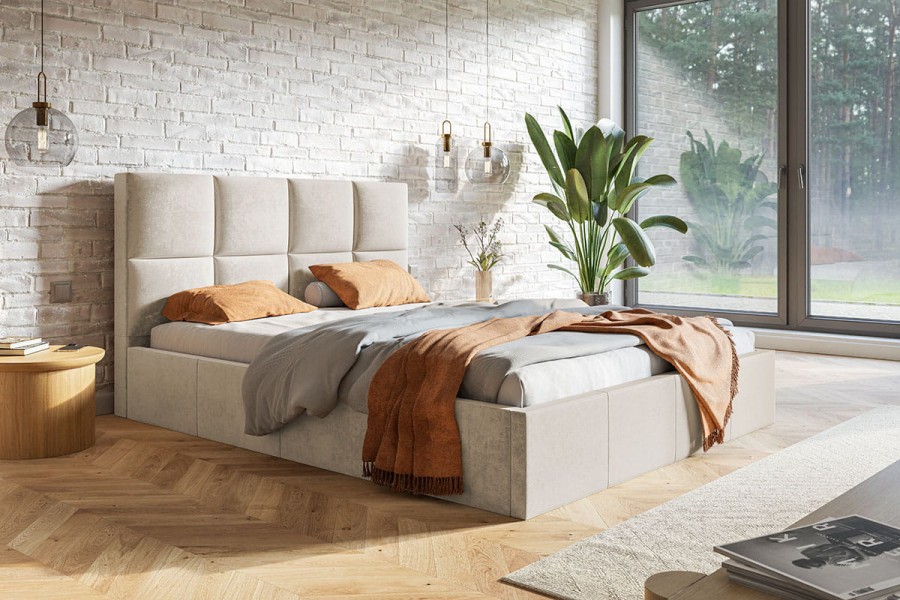 Wygląd łóżka pasuje do wielu stylizacji, będzie odpowiedni zarówno do klasycznych jak i nowoczesnych wnętrz. Uwagę przyciąga elegancki zagłówek, który wprowadza do sypialni odrobinę ciepła i przytulności.Łóżka produkujemy z użyciem starannie wyselekcjonowanych tkanin, dzięki czemu nasi klienci otrzymują produkt, który świetnie się prezentuje i staje się ozdobą każdego wnętrza.
