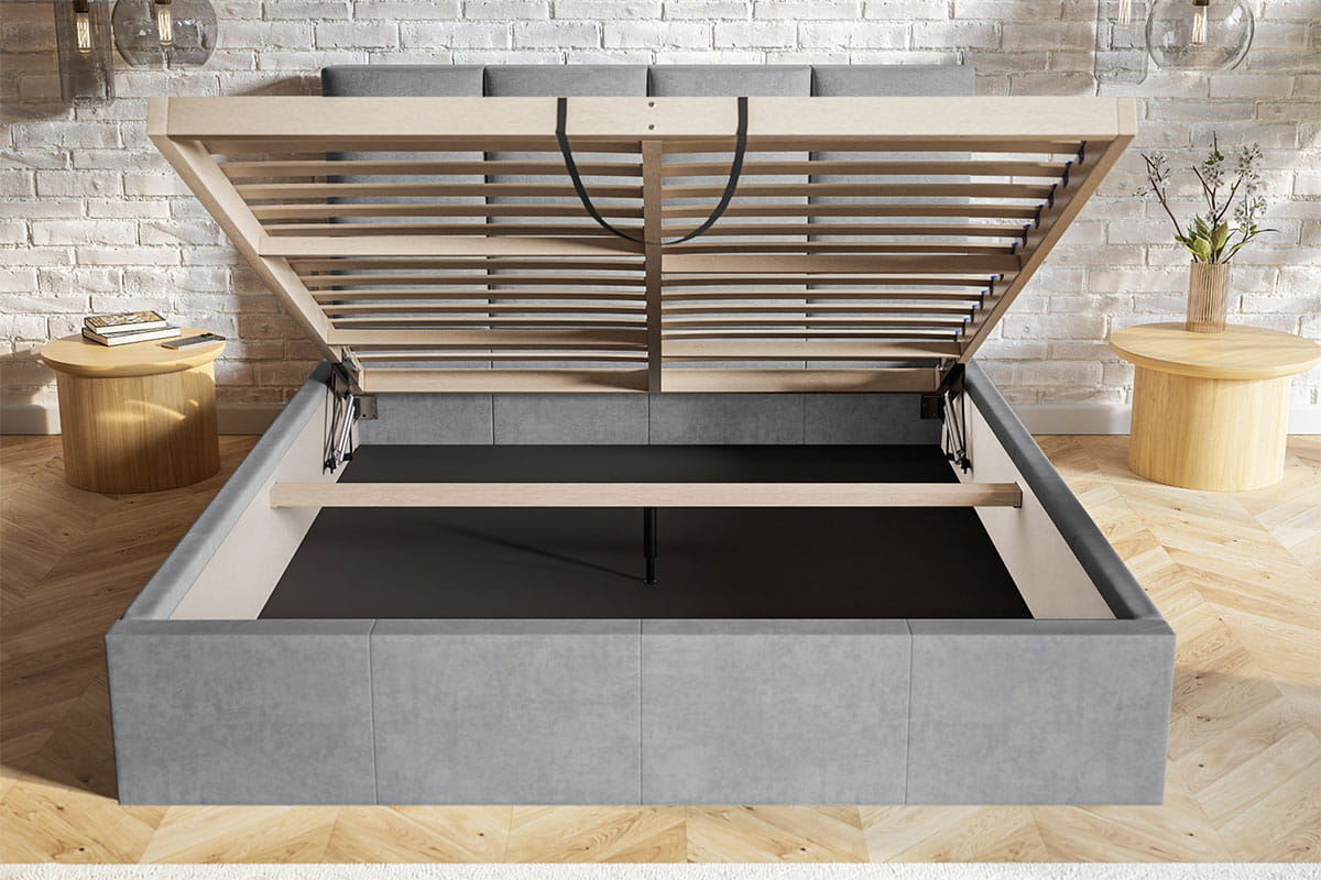 Przestronne, wzmocnione miejsce pod łóżkiem pomieści wszystko, co potrzebujesz schować.