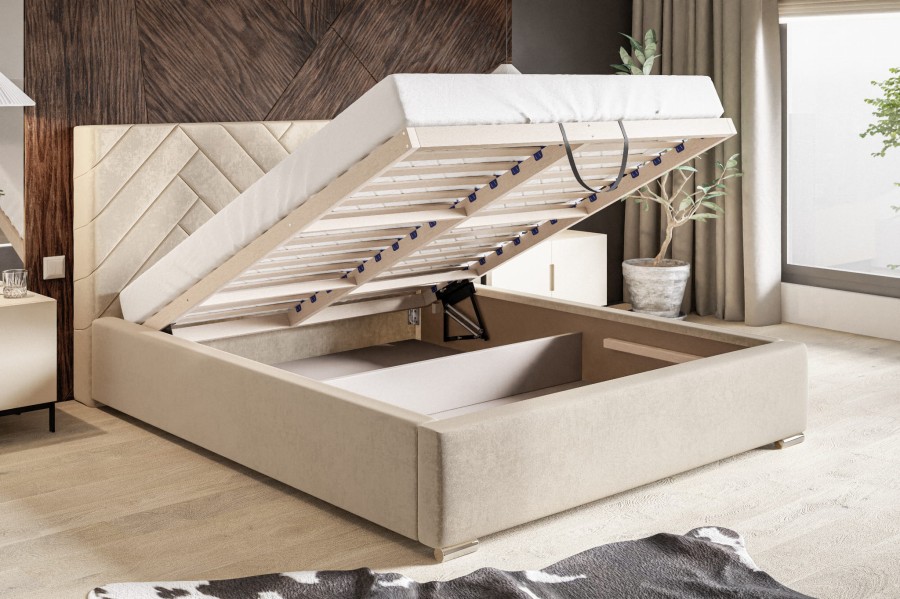 Łóżko tapicerowane ze stelażem i pojemnikiem OSLO PREMIUM