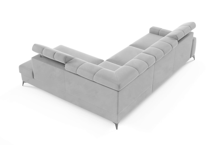 Narożnik LONDON ma zintegrowane poduszki oparciowe oraz regulowane zagłówki, które zapewniają dodatkowy komfort podczas siedzenia. Możesz dostosować ich układ, aby uzyskać optymalne wsparcie dla pleców i głowy. Dzięki nim, każde siedzenie na tym narożniku staje się relaksem.