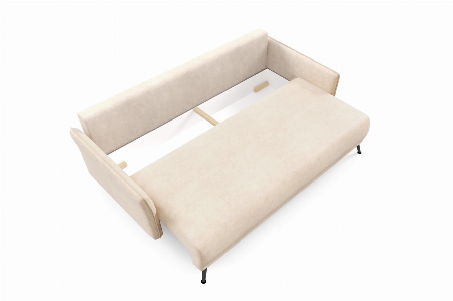 Kanapa VISTA to idealny wybór dla osób, chcących połączyć nowoczesny design z funkcjonalnością. Dzięki funkcji spania, kanapa może służyć za łóżko dla gości lub jako kanapa z funkcją codziennego spania. Użyteczny pojemnik na pościel pozwoli Ci utrzymać porządek w pokoju, a wygodne oparcie i siedzisko zapewnią Ci komfortowy wypoczynek w ciągu dnia. Nowoczesny, luksusowy design kanapy będzie ozdobą każdego salonu.