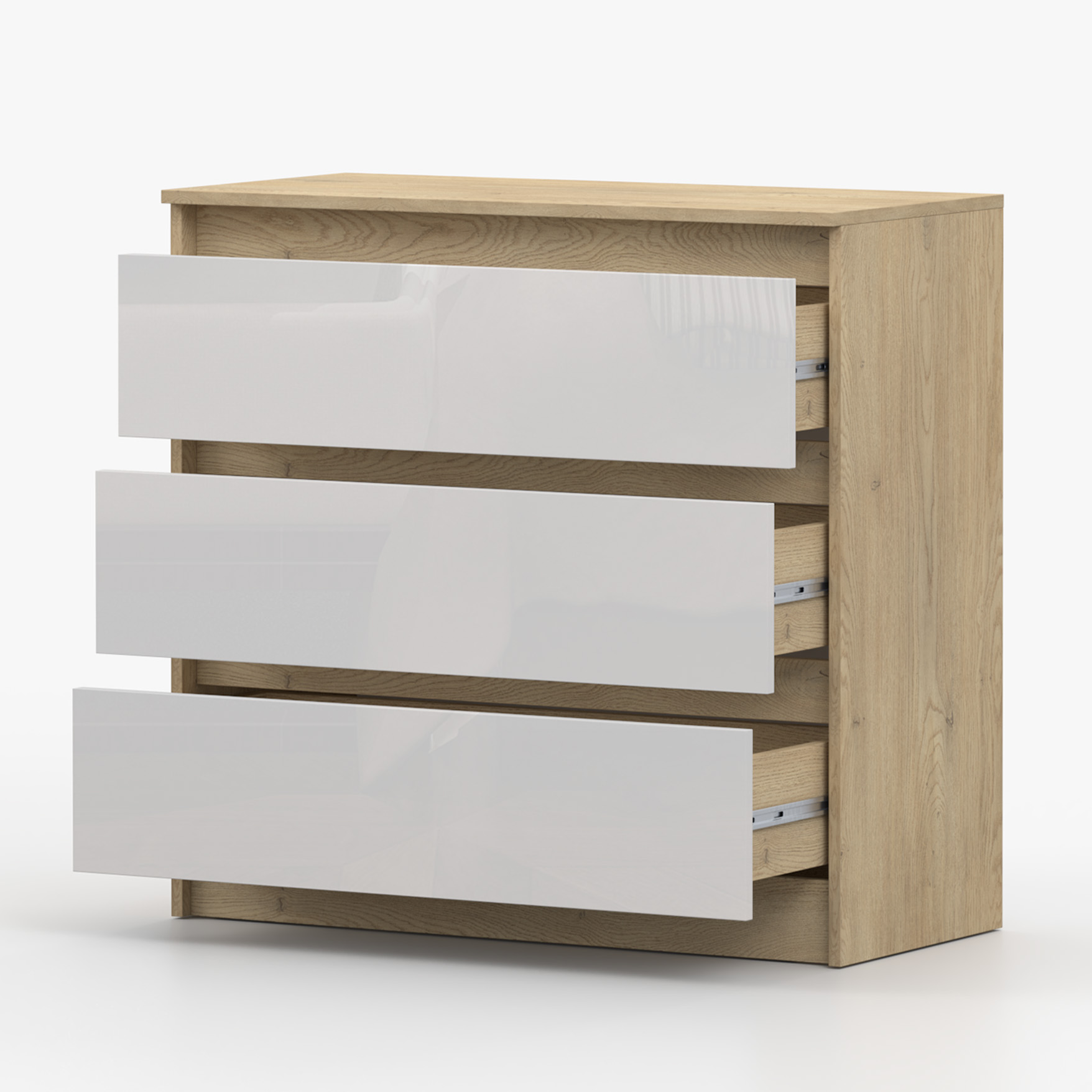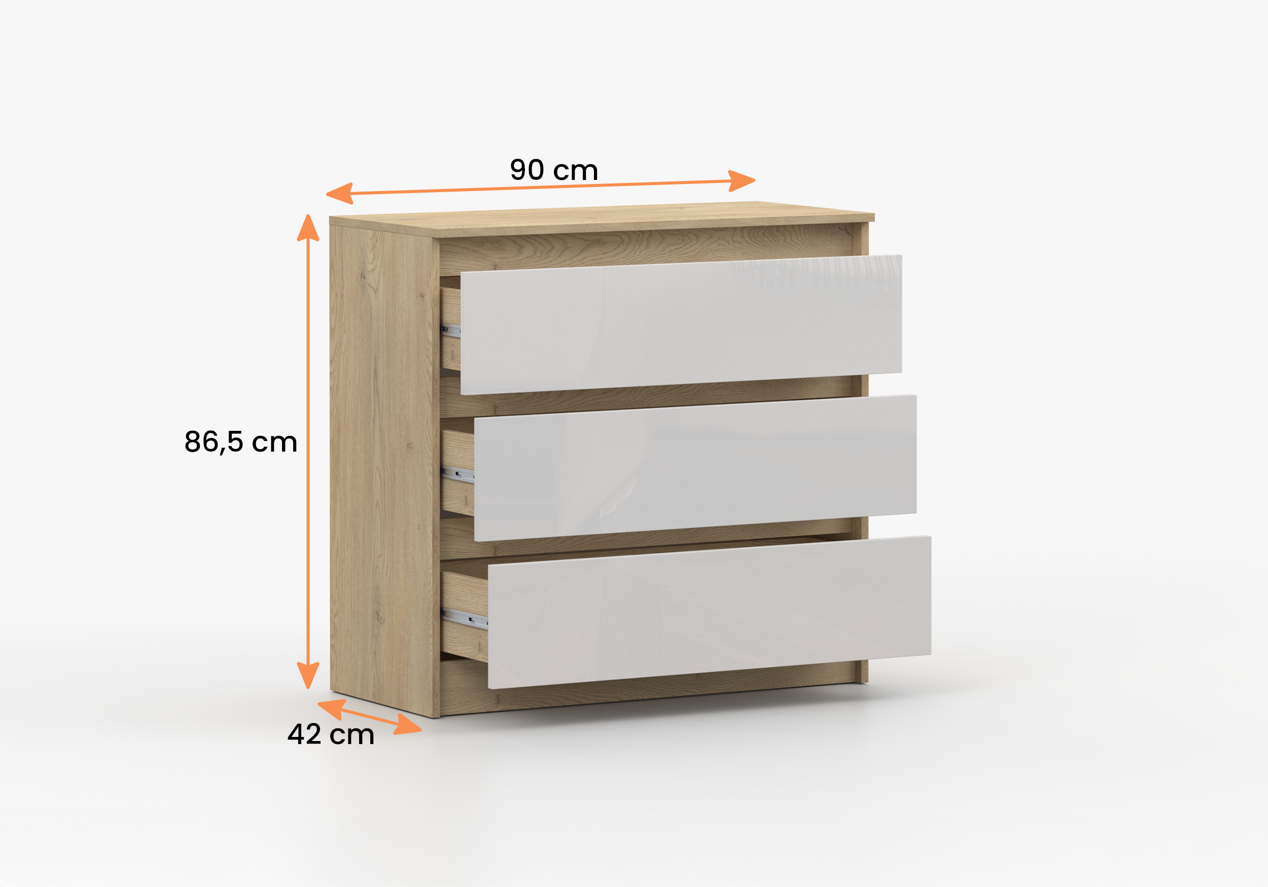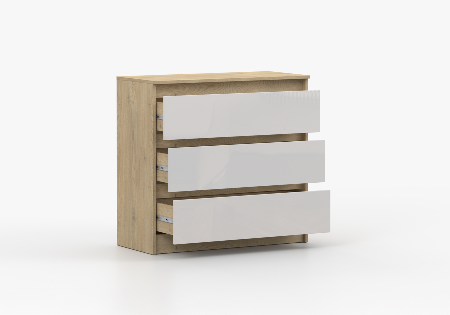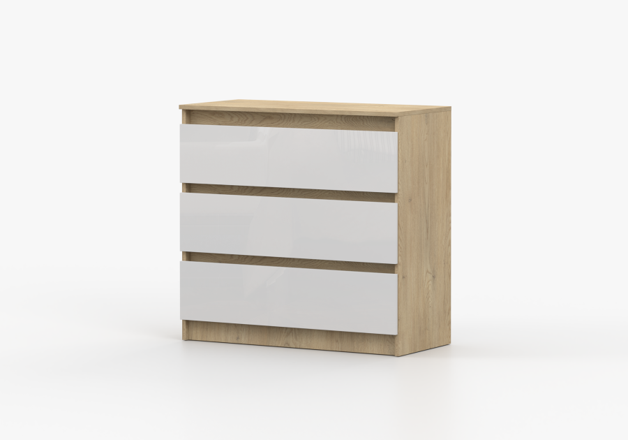 Komoda LORIS 90 cm dąb cremona fronty biały połysk