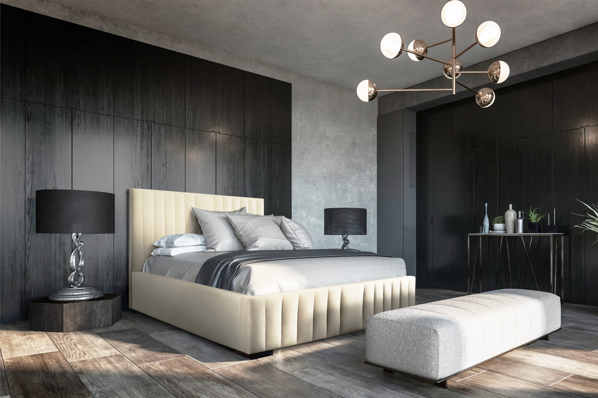 Łóżko VEGAS to doskonała propozycja do nowoczesnych wnętrz. Jego wysoki zagłówek zadba o wyjątkową atmosferę relaksu w sypialni i sprawi, że w wygodny sposób obejrzysz ulubiony serial lub przeczytasz książkę. Łóżko posiada dekoracyjne pionowe przeszycia na zagłówku oraz duży pojemnik na pościel. Dostępne w trzech rozmiarach i wielu tkaninach.