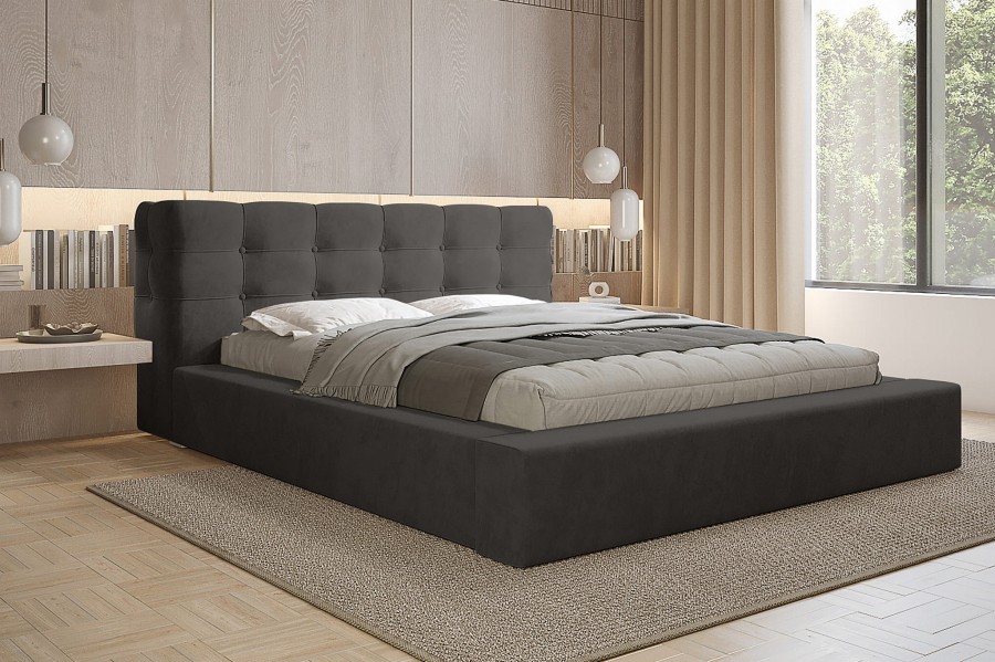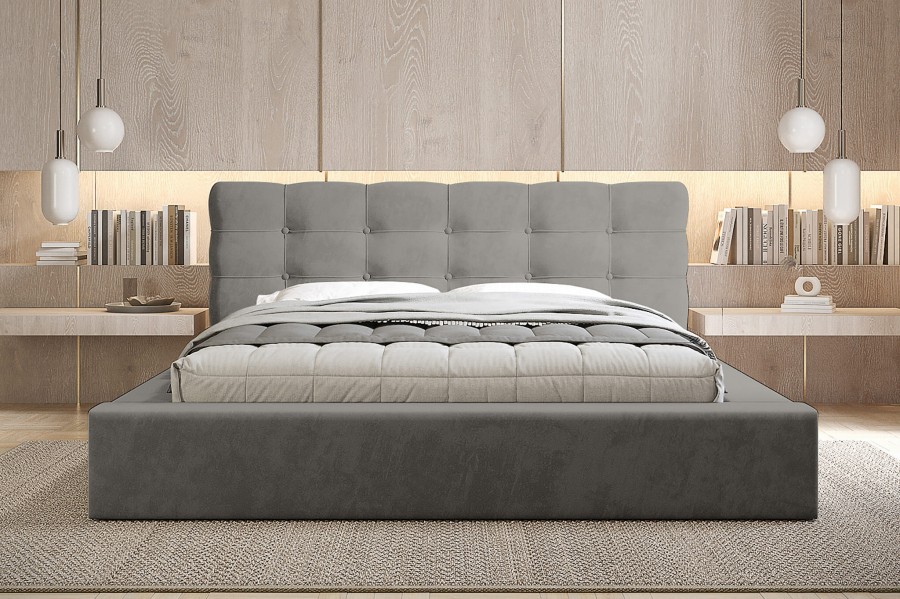 Dzięki łóżku tapicerowanemu GRACE możesz cieszyć się nie tylko doskonałym snem, ale także pięknym i luksusowym wnętrzem sypialni. Jego elegancki design i wysokiej jakości materiały tworzą atmosferę wyjątkowej estetyki, która przyciąga wzrok i dodaje wnętrzu prestiżowego charakteru. Stelaż pod materac został wyposażony w podnośniki, które umożliwiają łatwe podnoszenie i opuszczanie materaca. Jest to szczególnie przydatne podczas sprzątania lub zmiany pościeli, gdy chcemy mieć dostęp do przestrzeni pod łóżkiem.