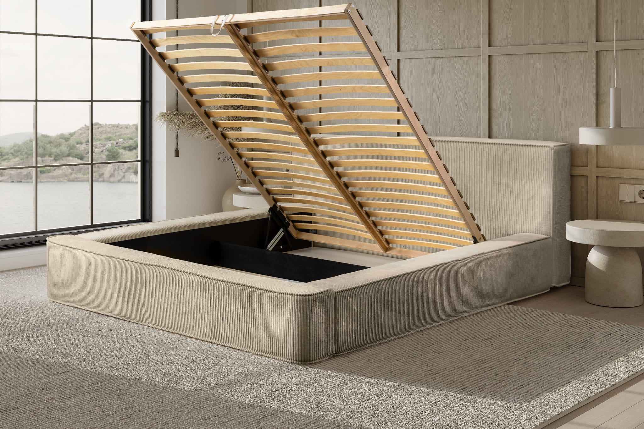 Przestronne, wzmocnione miejsce pod łóżkiem pomieści wszystko, co potrzebujesz schować.