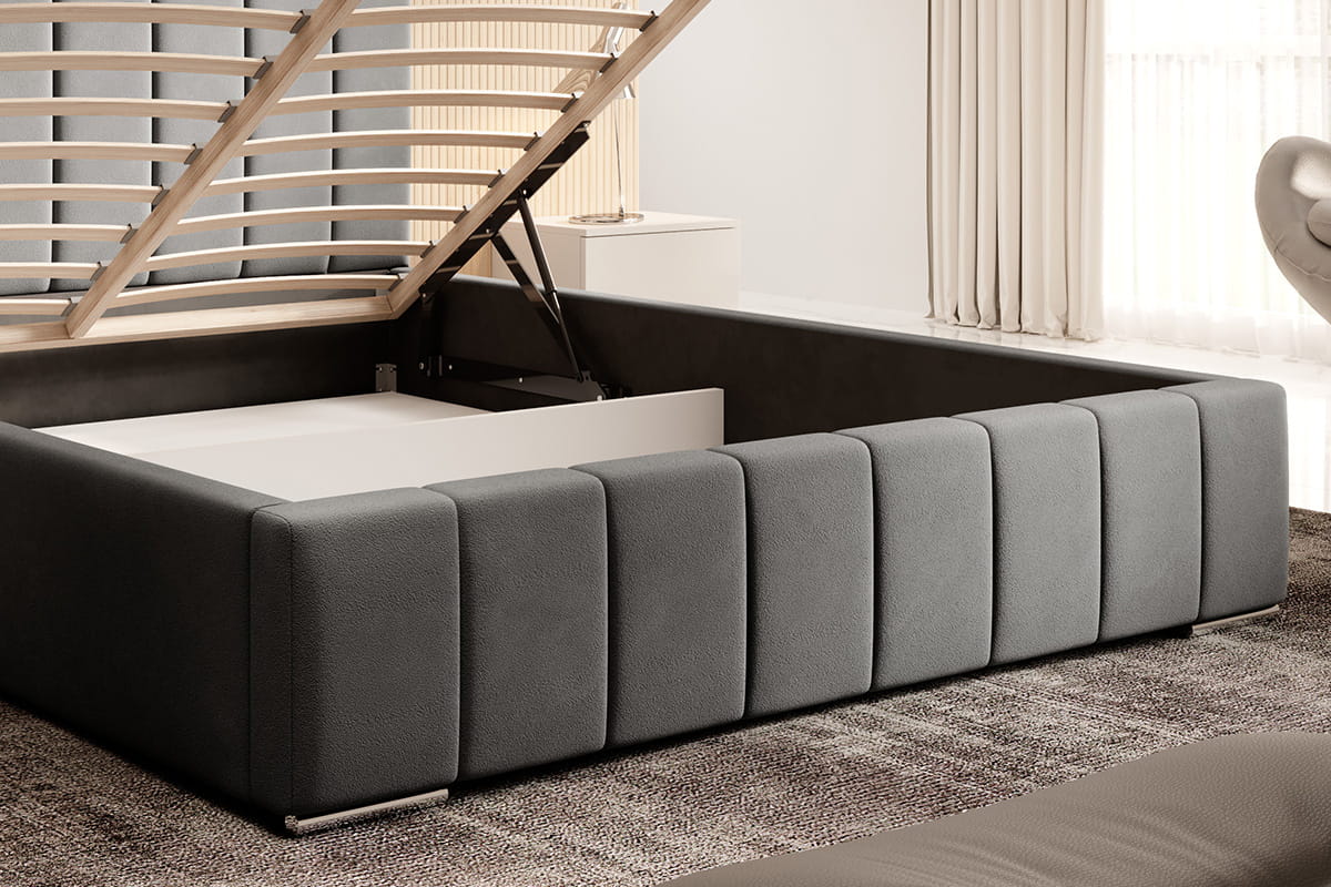 Głęboka przestrzeń do przechowywania znajdująca się na całej powierzchni spania z pewnością przyda się w pomieszczeniach o małej powierzchni, ponieważ pomieści zapasową pościel, dodatkowe poduszki, koce czy ubrania.