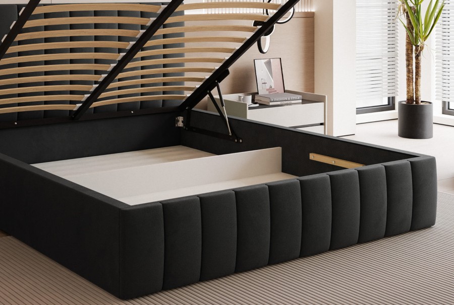 Przestronne, wzmocnione miejsce pod łóżkiem pomieści wszystko, co potrzebujesz schować.