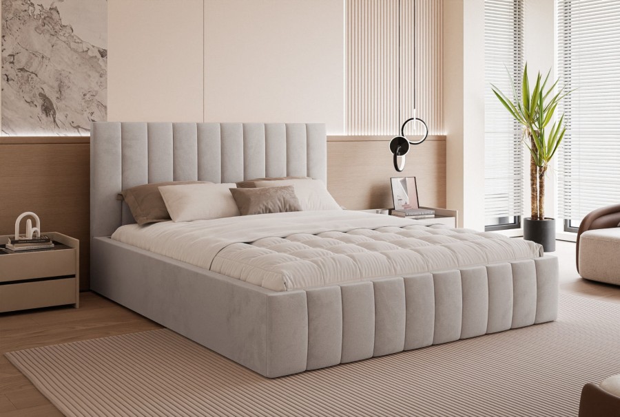 LARISA SLIM marki HOME DESIGN charakteryzuje się ponadczasową stylistyką, pasującą do każdego wnętrza sypialni. Nadaj swojemu wnętrzu oszałamiająco piękny i wysoce funkcjonalny element centralny, który sprawi, że nigdy nie będziesz chciał wychodzić z sypialni. Łóżko LARISA SLIM obite luksusowo wyglądającą tkaniną prezentuje nowoczesne pikowanie, które nadaje elegancki, ale nie przytłaczający wygląd, dzięki czemu pasuje do każdego stylu wnętrza.