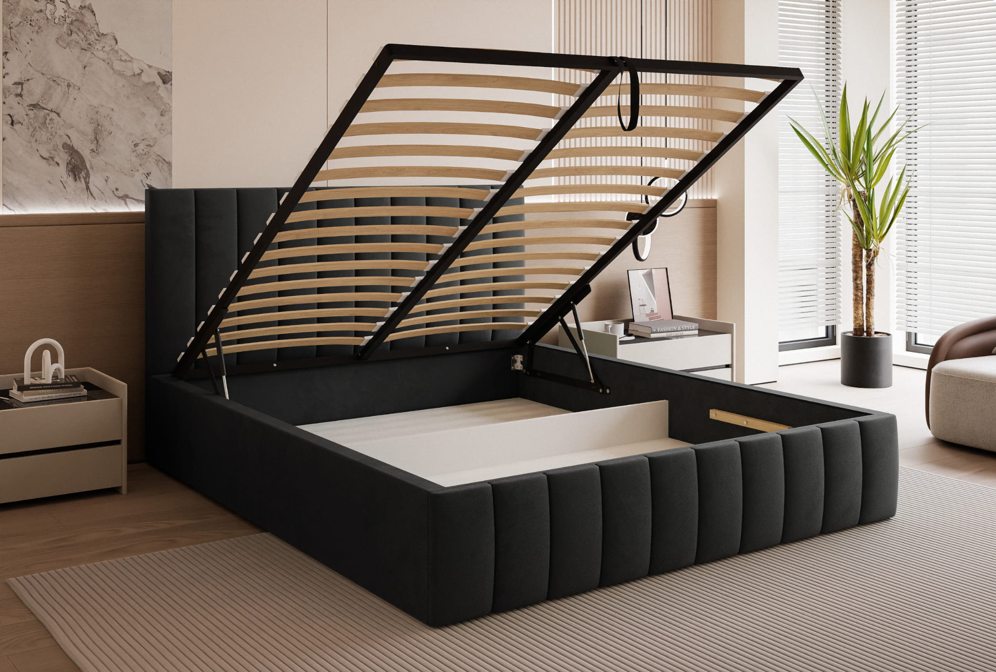 Łóżko tapicerowane ze stelażem i pojemnikiem LARISA SLIM