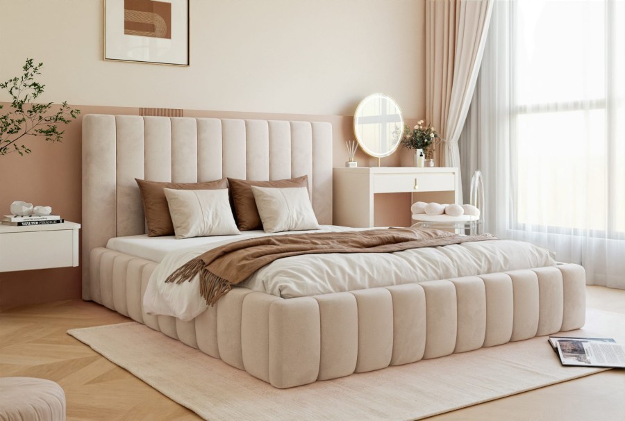 LIDO SLIM marki HOME DESIGN charakteryzuje się ponadczasową stylistyką, pasującą do każdego wnętrza sypialni. Nadaj swojemu wnętrzu oszałamiająco piękny i wysoce funkcjonalny element centralny, który sprawi, że nigdy nie będziesz chciał wychodzić z sypialni. Łóżko LIDO SLIM obite luksusowo wyglądającą tkaniną prezentuje nowoczesne pikowanie, które nadaje elegancki, ale nie przytłaczający wygląd, dzięki czemu pasuje do każdego stylu wnętrza.