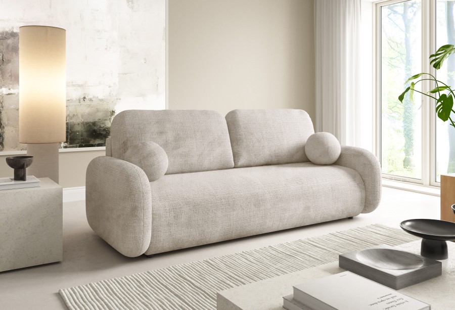 Sofa z funkcją spania LEO 220x92 cm rozkładana beżowa nowoczesna