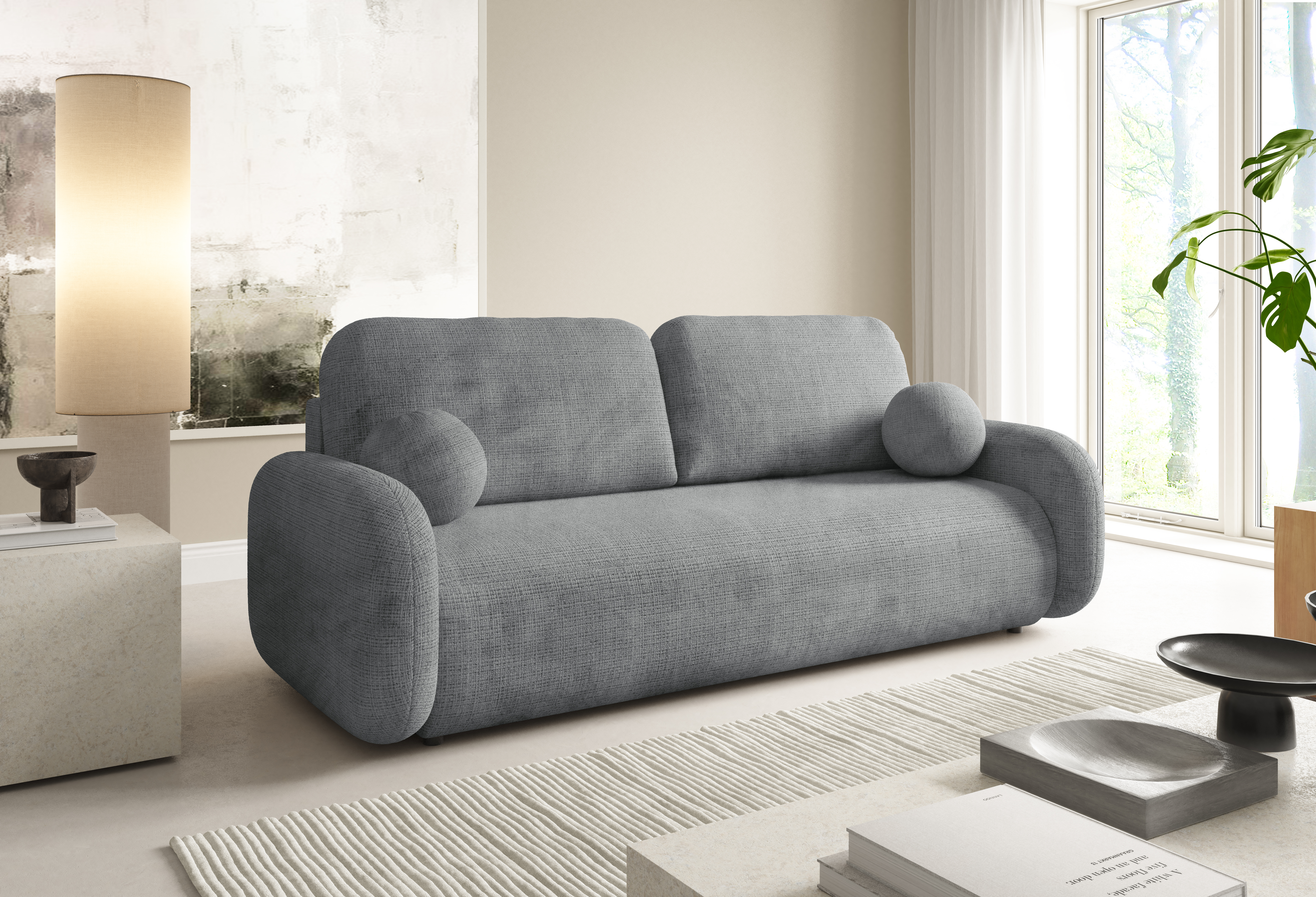 Tapicerowana kanapa LEO to stylowy mebel pasujący do każdego wnętrza. Miękkie poduszki pełniące funkcję podłokietnika dołączone do kompletu podnoszą komfort siedzenia. Kanapa posiada funkcję spania, a jej rozkładanie jest proste i szybkie. Pojemnik na pościel, który posiada kanapa jest jej dodatkowym atutem. Dzięki funkcji spania i pojemnikowi na pościel staje się meblem funkcjonalnym, który w ciągu dnia służy do siedzenia, a w nocy może zmienić się w dodatkowe miejsce do spania. Tył obity materiałem sprawia, że można ją ustawić w każdym pomieszczeniu na wiele sposobów. Sposób wykonania kanapy i użyte materiały zapewniają wysoki komfort wypoczynku.
