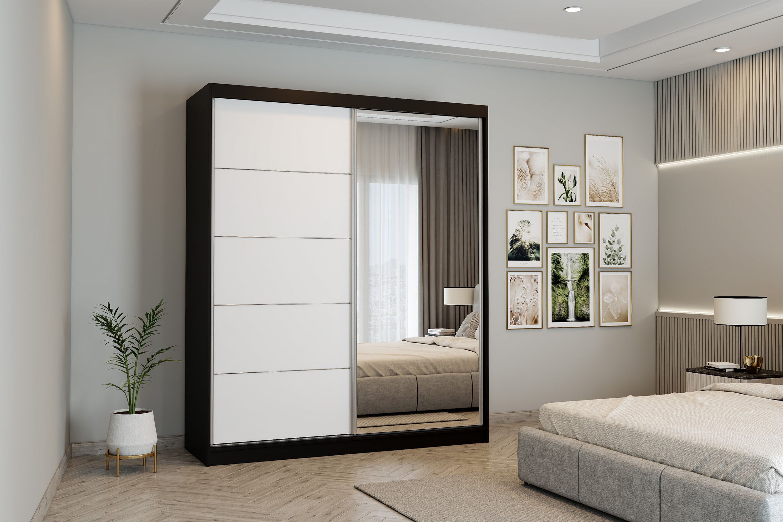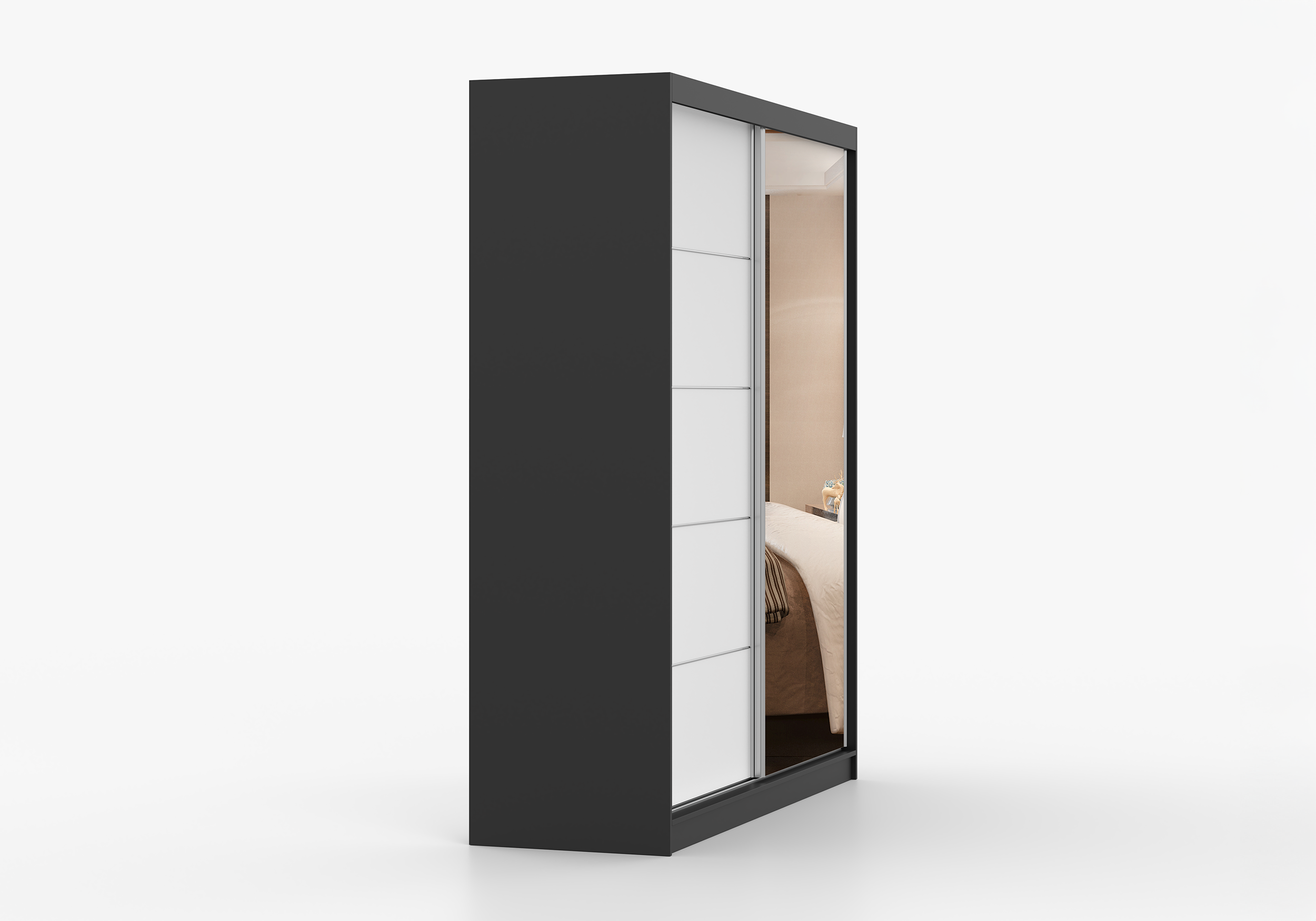 Szafa przesuwna BELLA z lustrem 183 cm czarny fronty białe