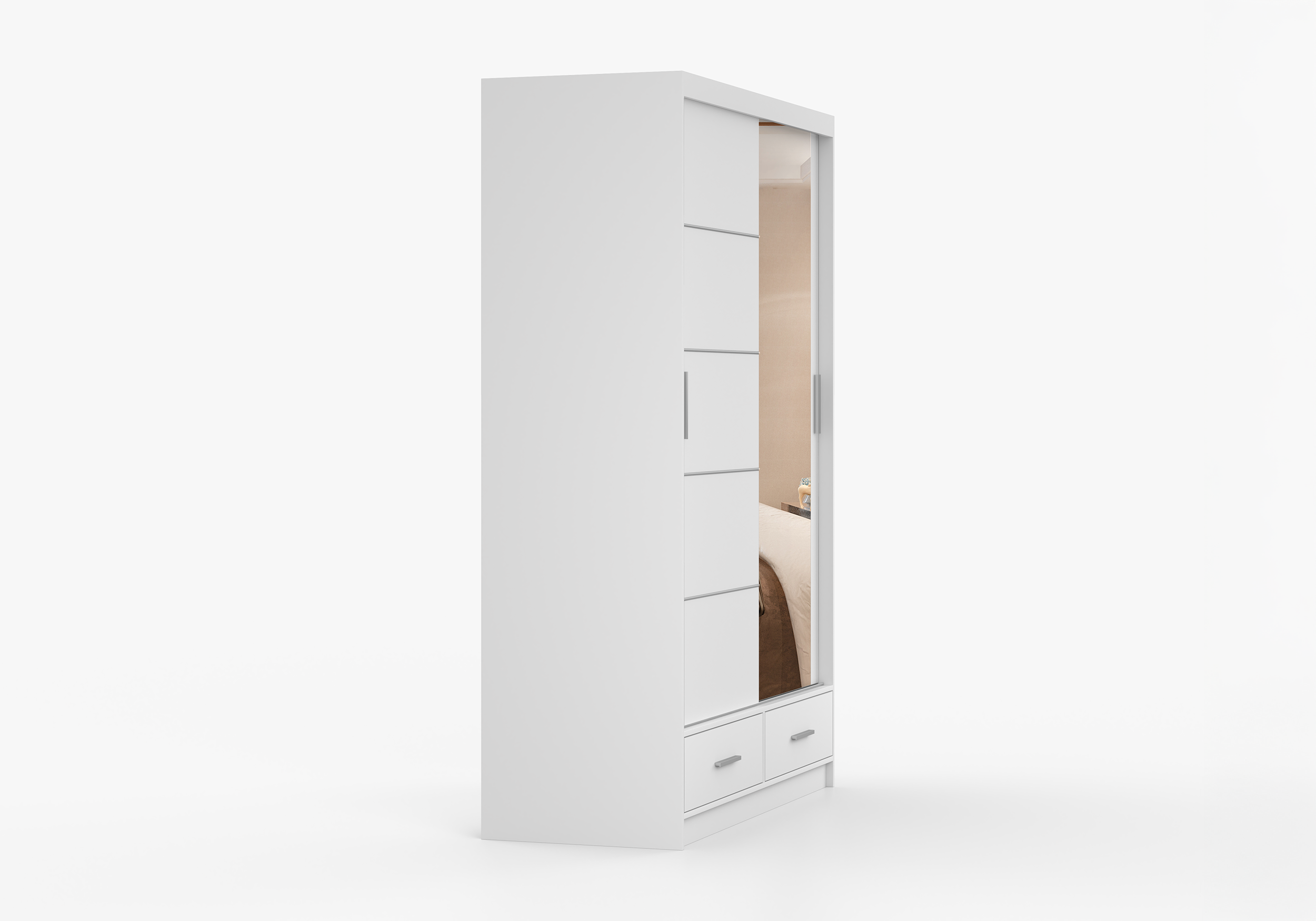 Dolna część szafy została wyposażona w dwie pojemne szuflady. To idealne miejsce na bieliznę, dodatki lub rzeczy, które chcesz mieć zawsze pod ręką.