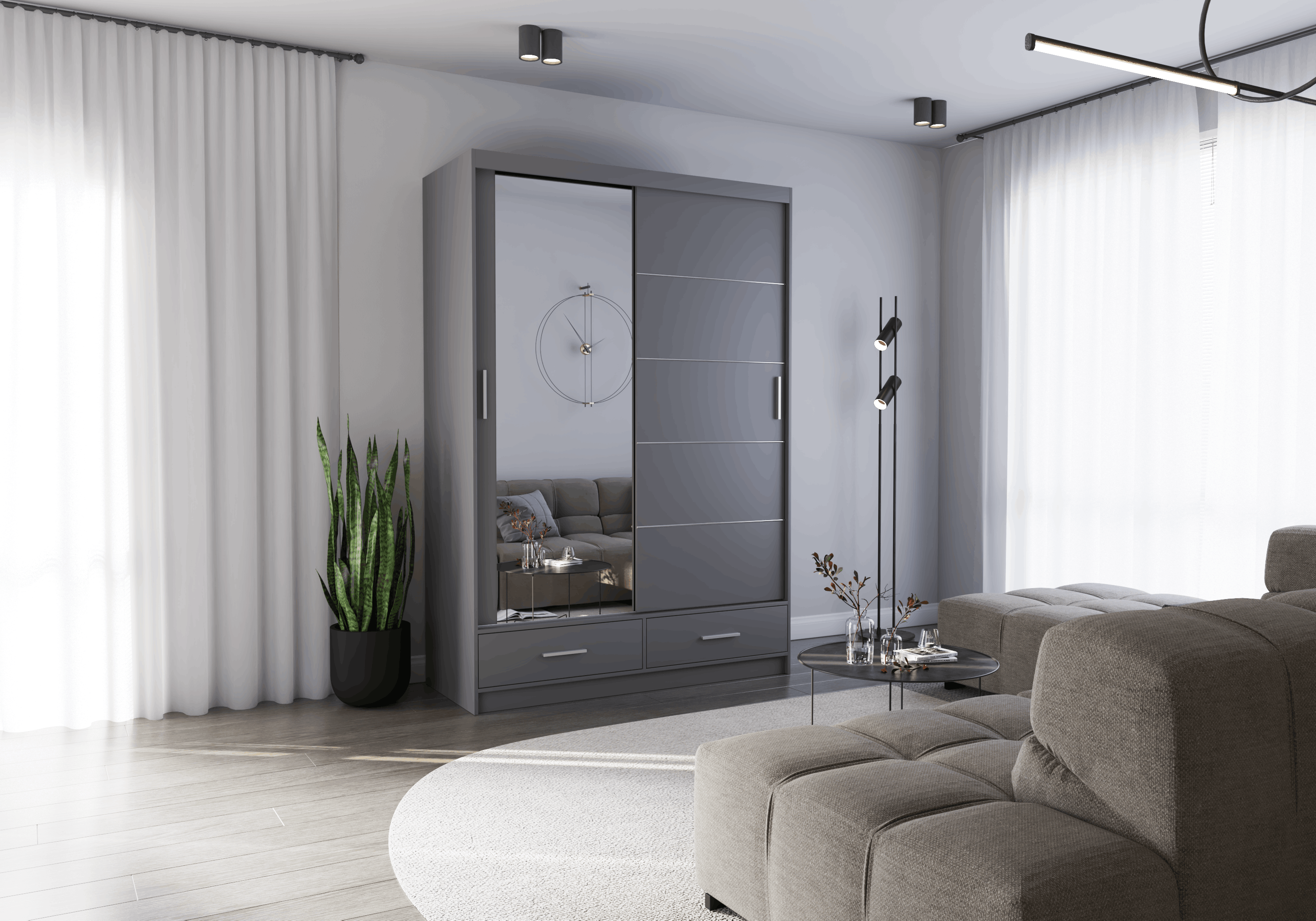 Szafa przesuwna FLORENCE z lustrem 150 cm szary