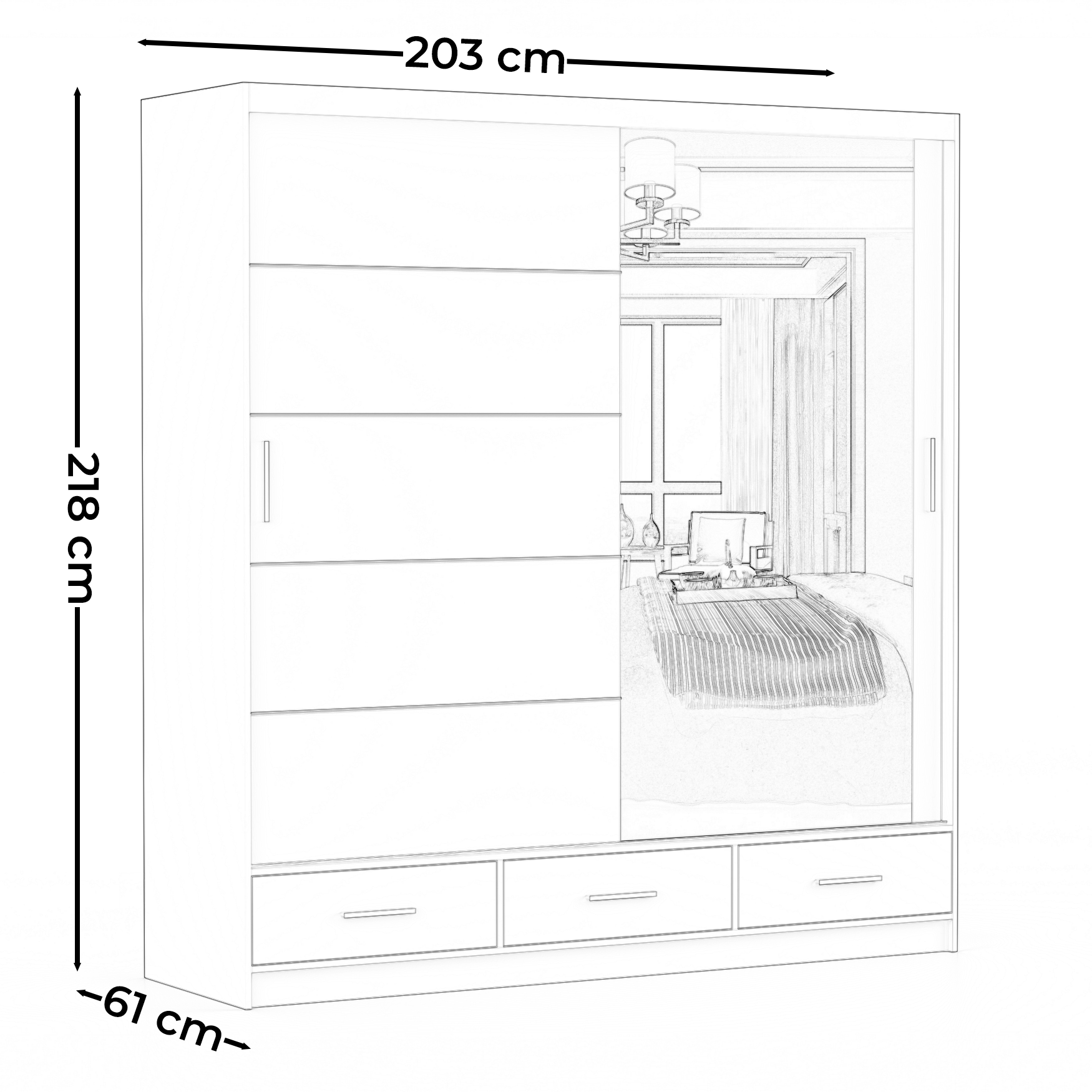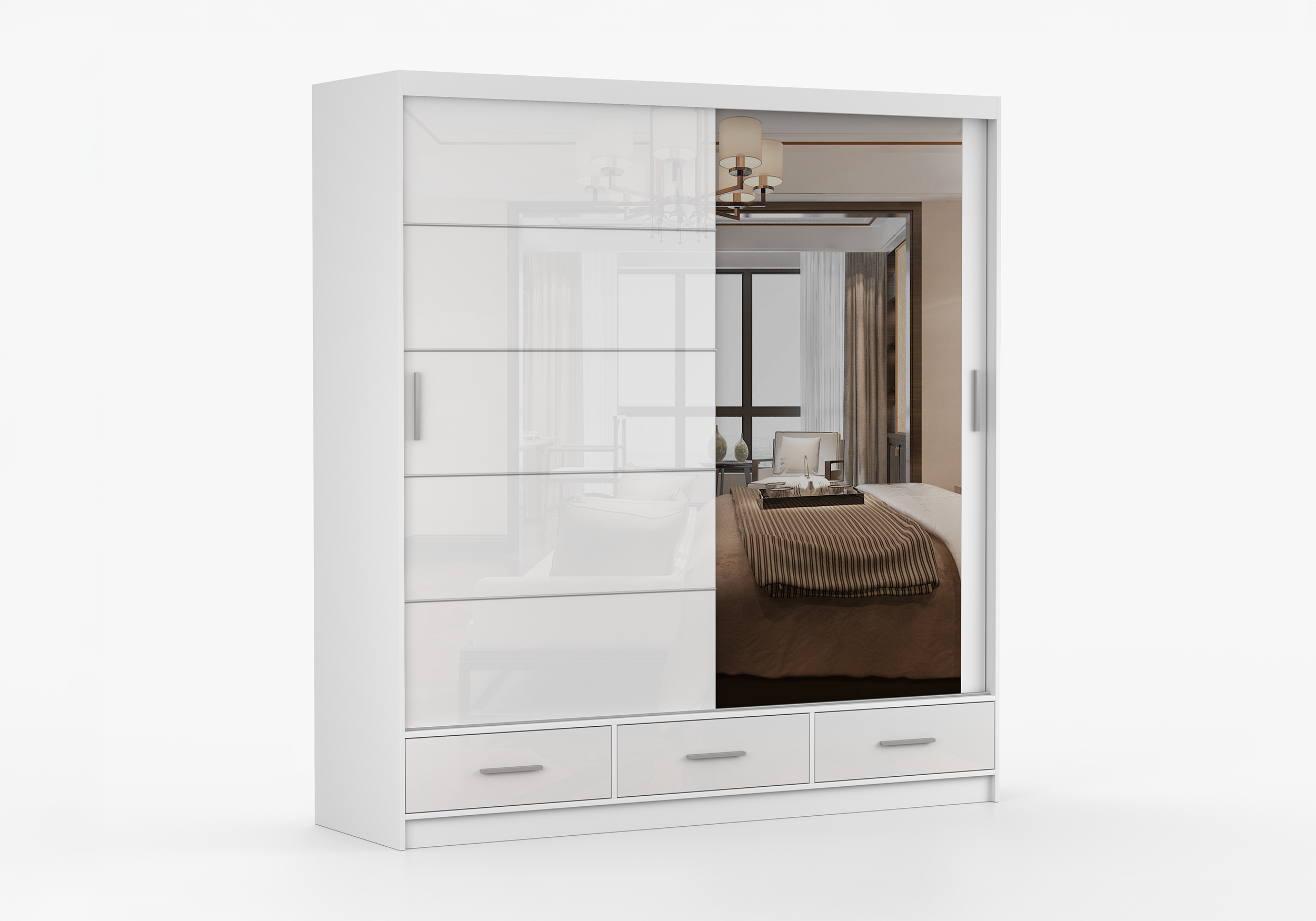 Szafa przesuwna FLORENCE z lustrem 203 cm biały połysk
