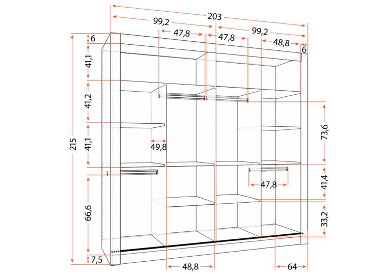 - dodatkowe półki na składane rzeczy