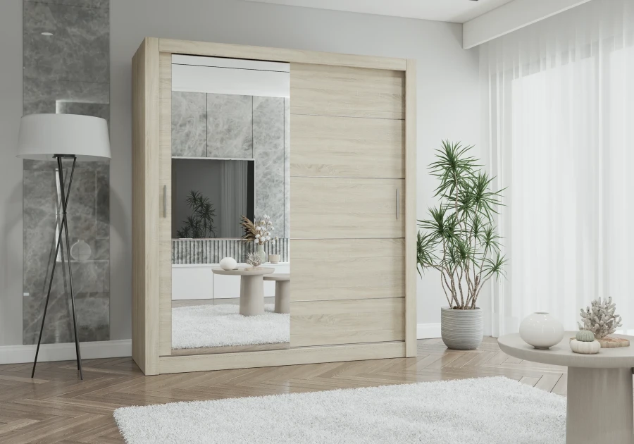 Szafa przesuwna LYON z lustrem 203 cm sonoma
