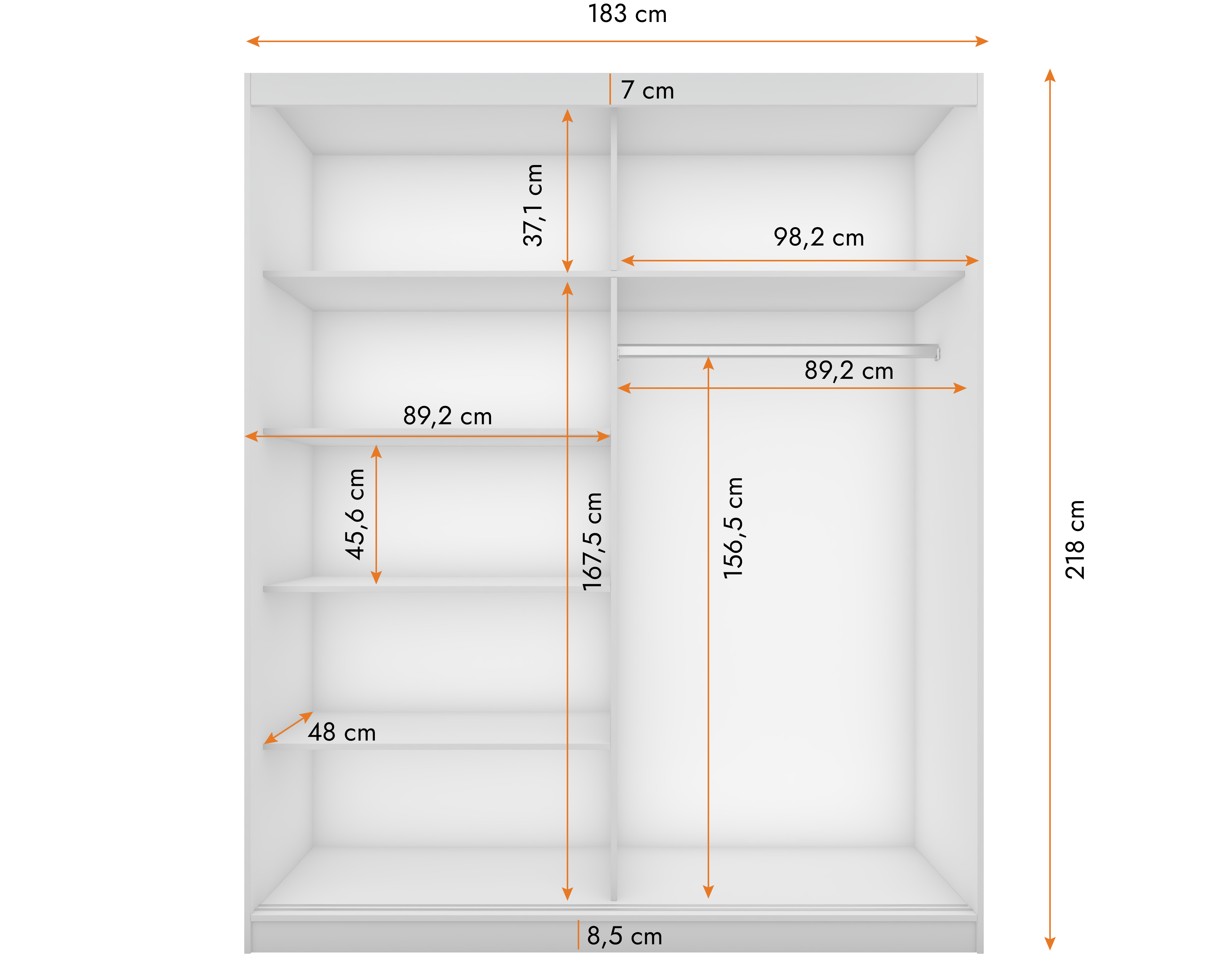 Optymalna szerokość sprawia, że szafa oferuje dużą pojemność, a jednocześnie nie przytłacza pomieszczenia. To idealny balans między funkcjonalnością a estetyką.