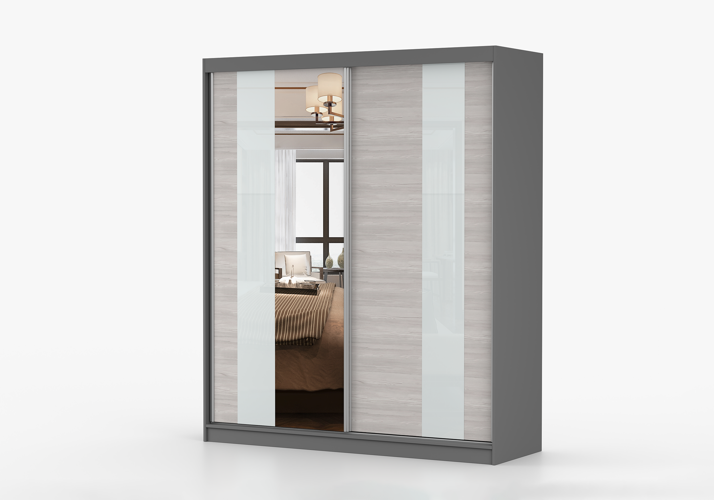 Szafa przesuwna MULTI z lustrem 183 cm szary fronty kathult