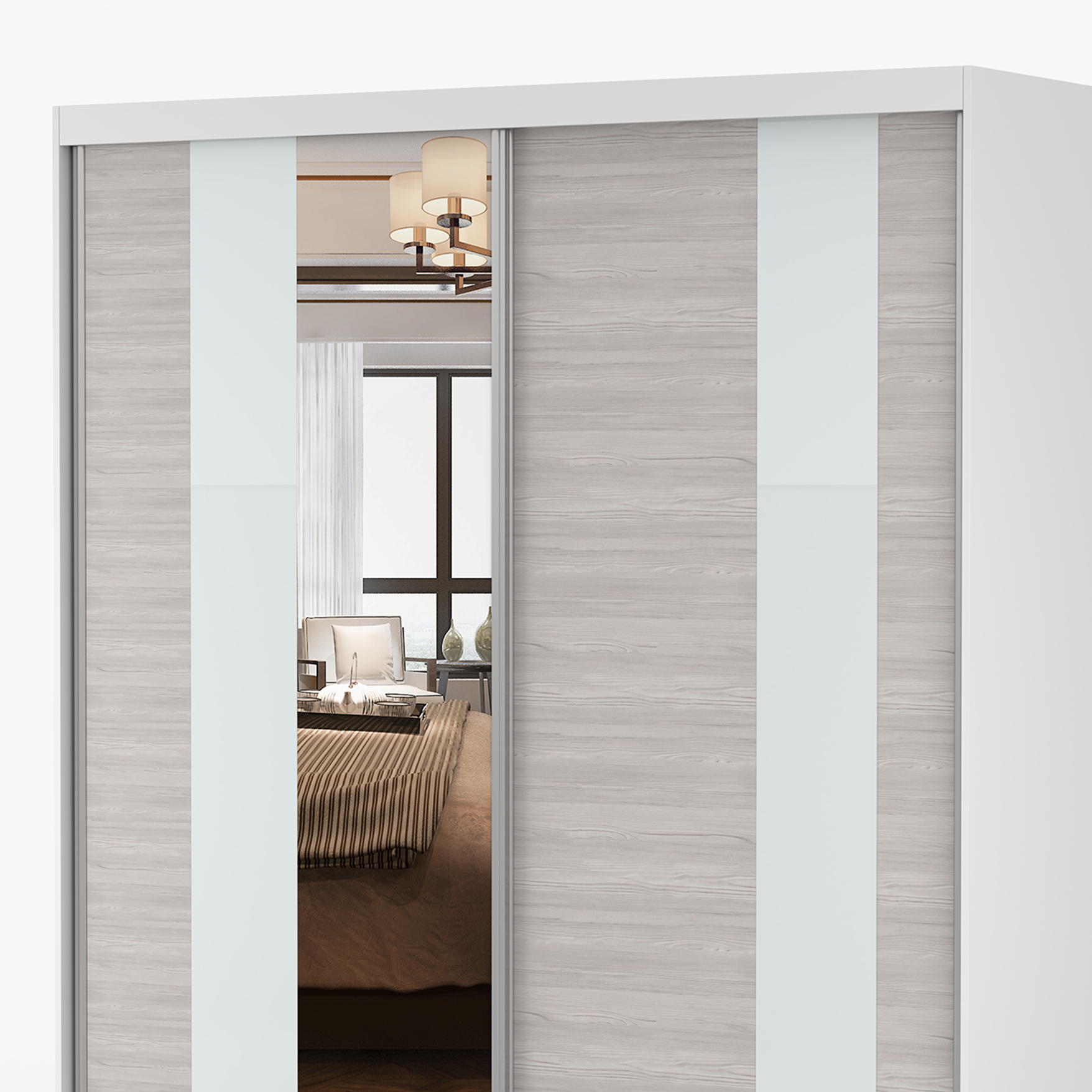 Pionowe, jasne wstawki na frontach nadają szafie nowoczesnego charakteru i przełamują klasyczną formę. Dzięki nim MULTI wyróżnia się na tle innych modeli i wprowadza do wnętrza lekkość.