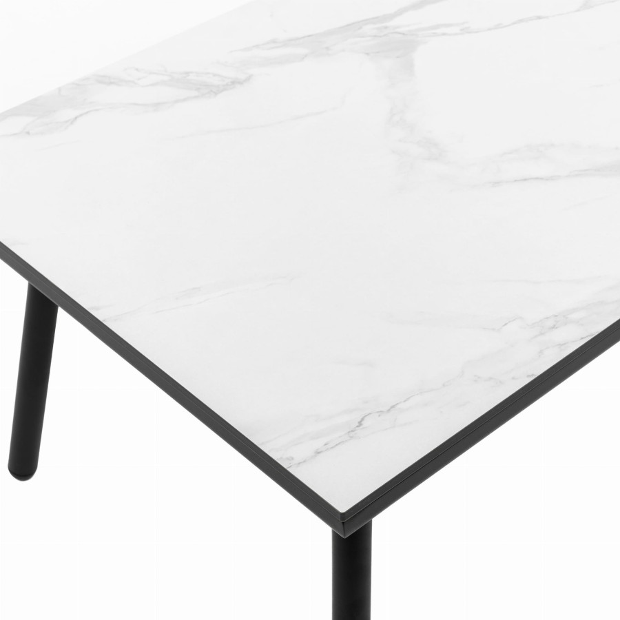 ✔ Blat z wytrzymałej płyty HPL z efektem białego marmuru, który dodaje zestawowi luksusowego charakteru.